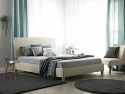The bed is a true accent piece that would enliven any bedroom. Classic shapes are complemented by modern details such as shiny button tufting and nailhead trim. The design is upholstered in a high-quality faux leather that is easy to look after. The robust frame provides the mattress support and stability ensuring a comfortable sleep.