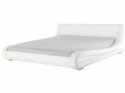 Add a refined feel to your bedroom with this contemporary white leather bed. Original design features curved shapes that give it a futuristic impression. The bed is crafted with precision from high-quality materials that complement each other perfectly, and ensure the longevity of the piece. Short, silver legs emphasize and enhance the luxury design.