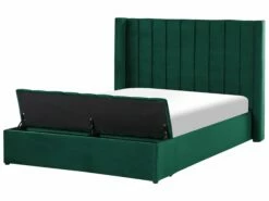 This velvet upholstered bed is a true statement piece of any modern and traditional bedroom. Featuring impressive shape consisting of a frame designed with a bench and a high, winged headboard, it is made to offer the best comfort of sleep. Thickly filled, the tufted headboard is just perfect to lean on and read a book or watch TV. The storage bench can be used as an extra seat or place to put away bedding, cushions, clothing etc.