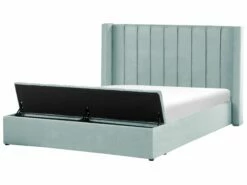 This velvet upholstered bed is a true statement piece of any modern and traditional bedroom. Featuring impressive shape consisting of a frame designed with a bench and a high, winged headboard, it is made to offer the best comfort of sleep. Thickly filled, the tufted headboard is just perfect to lean on and read a book or watch TV. The storage bench can be used as an extra seat or place to put away bedding, cushions, clothing etc.
