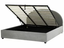 Curved shapes and rich texture fabrics are the features of furniture perfect for retro theme decor in your bedroom. No other bed will fit that interior style more than this bed in a light grey shade. Upholstered in velvet it is not only pleasant to touch, it is also easy-care and durable and thanks to it, the bed will last for many years. With its rounded headboard, it will add an inviting feel to a bedroom. The bed comes with an ottoman storage, which will allow you to keep your extra cushions and bedding close at hand.